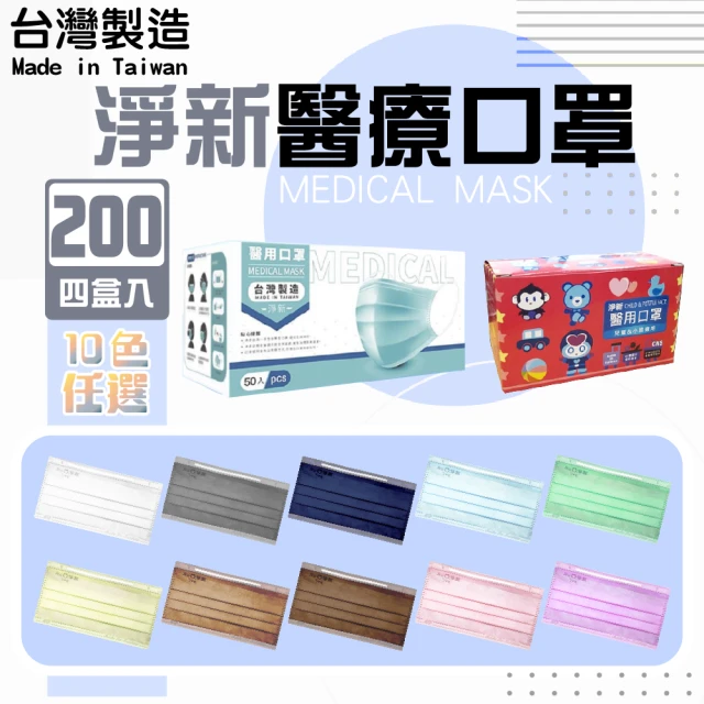淨新 雙鋼印醫療級口罩4盒組50入/盒(成人/兒童口罩/國家隊 防飛沫/灰塵/共200入)