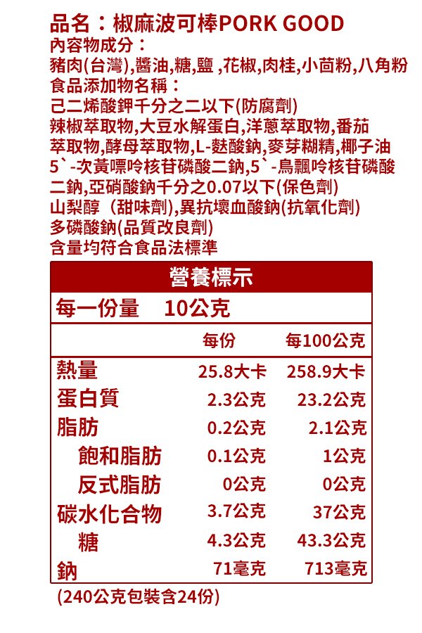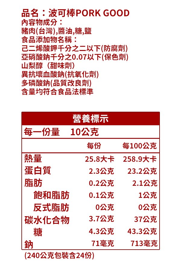 千翔肉乾_波可棒PORK GOOD(240公克/袋)*3共3入